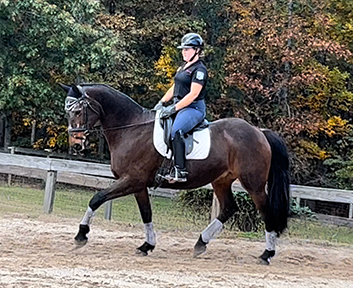 APRIL, 2024: Amanda Volz with her leased horse, Dartanian.